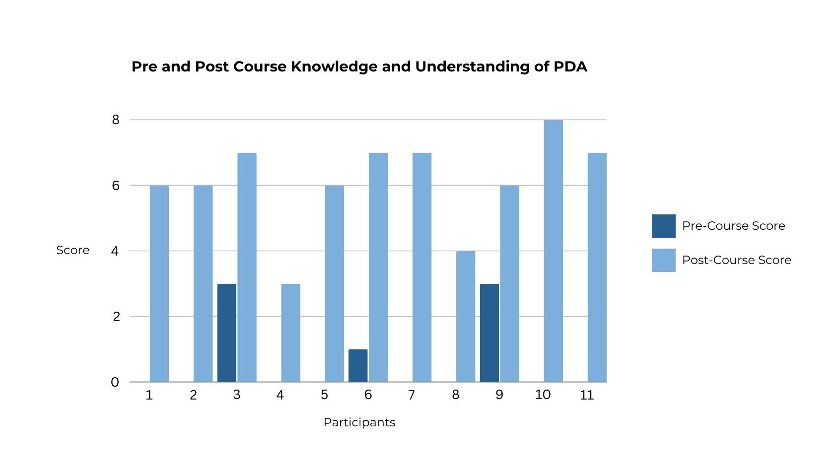 “Very well delivered, enjoyed the practical activities. Have more knowledge on PDA. Understood the sensory differences much better, useful resources to take back, great ideas shared as a group.”